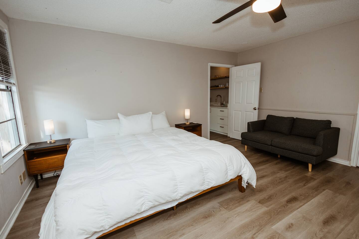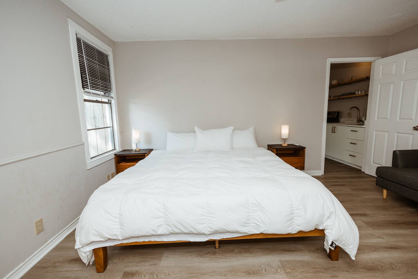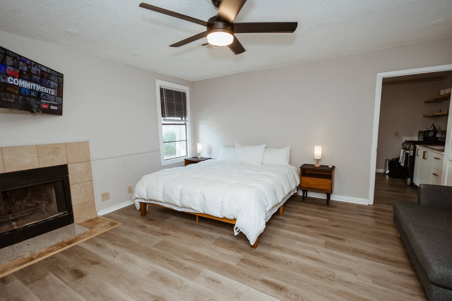 Welcome to this cozy studio retreat, perfect for a relaxing stay - long or short! Enjoy a modern kitchen with quartz countertops, a spacious king-size bed, and a comfortable living area with a TV. The space also includes a bathroom and in-unit laundry for your convenience. Nestled in a peaceful, walk-able neighborhood, it's fully furnished and equipped to make you feel right at home. Ideal for solo travelers, couples, or business trips!